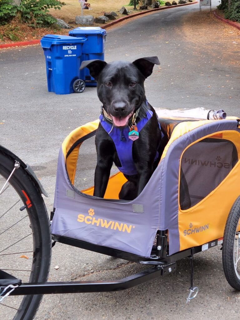 Hi! My name is Chicago and I’m 17 months old. I was born in a shelter in Galveston, TX. A nice woman from a dog rescue took in my mom and 10 siblings the next day. She cared for us and got us all prepared for our forever homes. When I was 10 weeks old, I took a 2 day road trip with most of my siblings to the PNW. That’s when I met my mom and dad, Janette and Mike. They were told I was a cattle dog mix, but were very surprised when they did a DNA test and found out I was 30% Pit, 25% Cattle Dog and 15% each German Shepherd and BOSTON TERRIER. Luckily, I grew up to have a cattle dog body type and topped out at 50 lbs. Besides my parents, I’m really glad I moved to Seattle because I don’t really like the heat very much. When it’s sunny out in the summer, I like to find the nearest shade and am glad my parents bring lots of water for me.