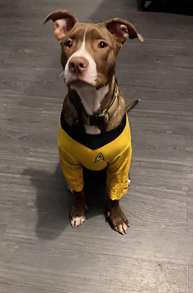Hello! My name is James T. Kirk but I go by James, Jamie, The Captain or Destructo-Sauraus-Rex. My life mantra is Food, Fun and Friendship. I’m a Pit Bull mix and I am almost 9 months old. I was born in Arizona but the Humane Society brought me to Seattle when I was 9 weeks old where I met my mom and stole her heart. I love every person and dog I meet and if they’re a little afraid of me, I know they just need to get to know me and they’ll love me too. I love going out to the coast and going on long walks with my dad, he’s my favorite human (shhhh don’t tell my mom, she gives me more treats). The beach is my favorite, oh and the woods are my favorite, oh and the dog park is my favorite, oh and Zoom Room too, also my favorite. I love it all!