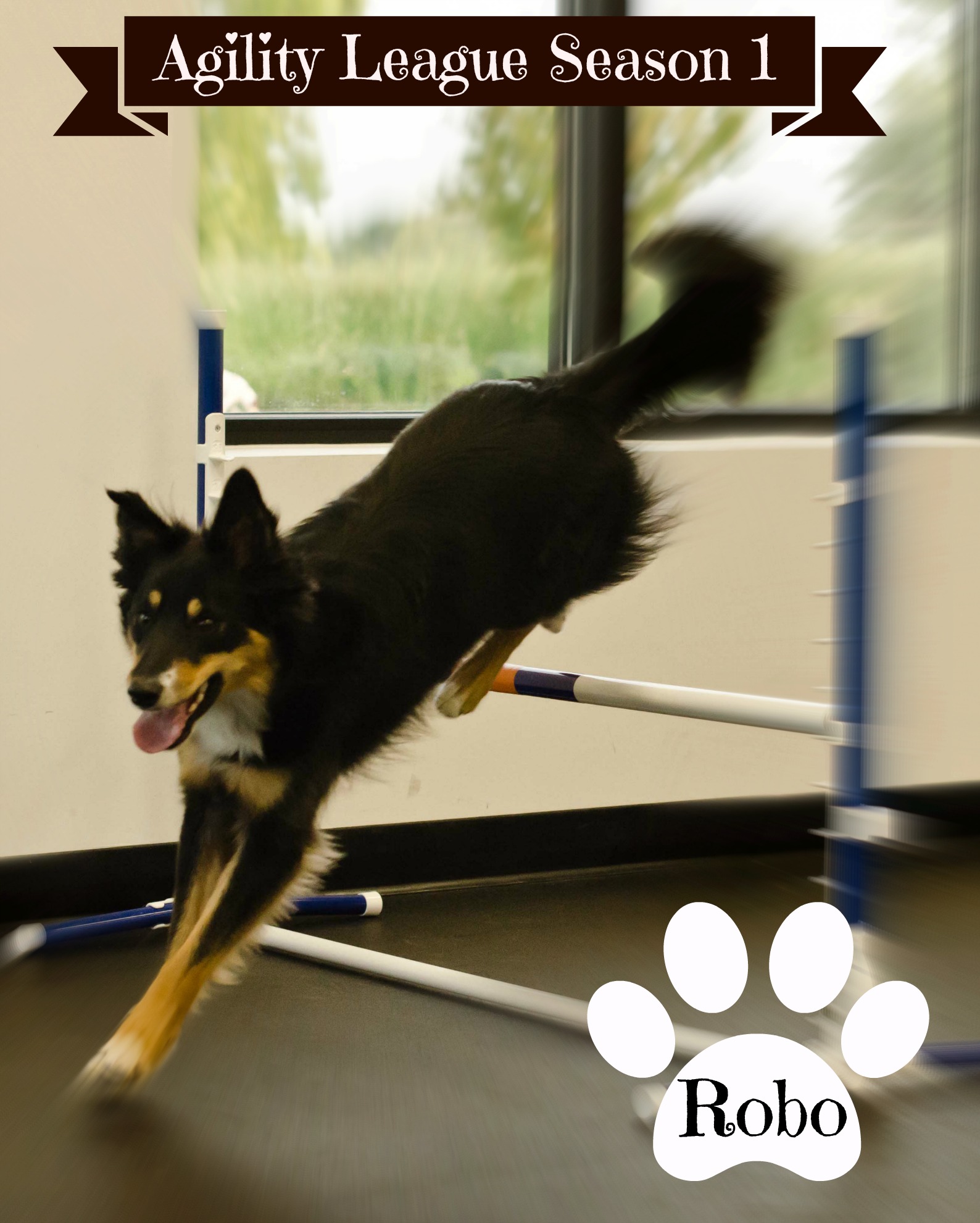 When Robo first came to Agility he didn’t want to jump over the jumps and would just walk over them and almost always knock them over. Now he has a beautiful jump and is exciting to watch on the course. He still doesn’t always care for the tunnels but with enough encouragement he will go through them. He came in 3rd place in the first session of Agility League and he’s looking to move up in the rankings during this next session.