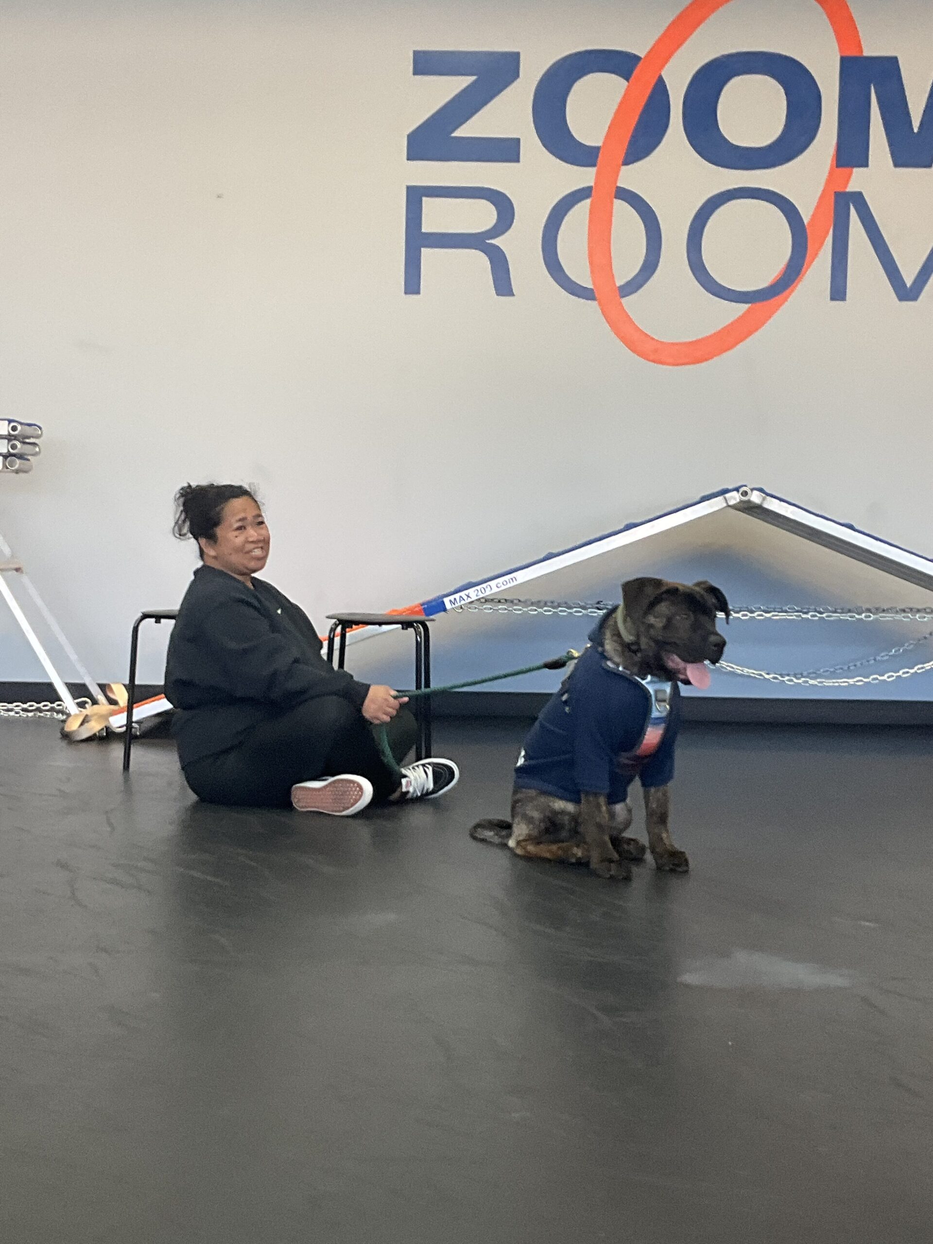 Training with Mom Check out this great photo of DRAX, one of the amazing dogs who train at the Zoom Room indoor dog training gym in Long Beach.