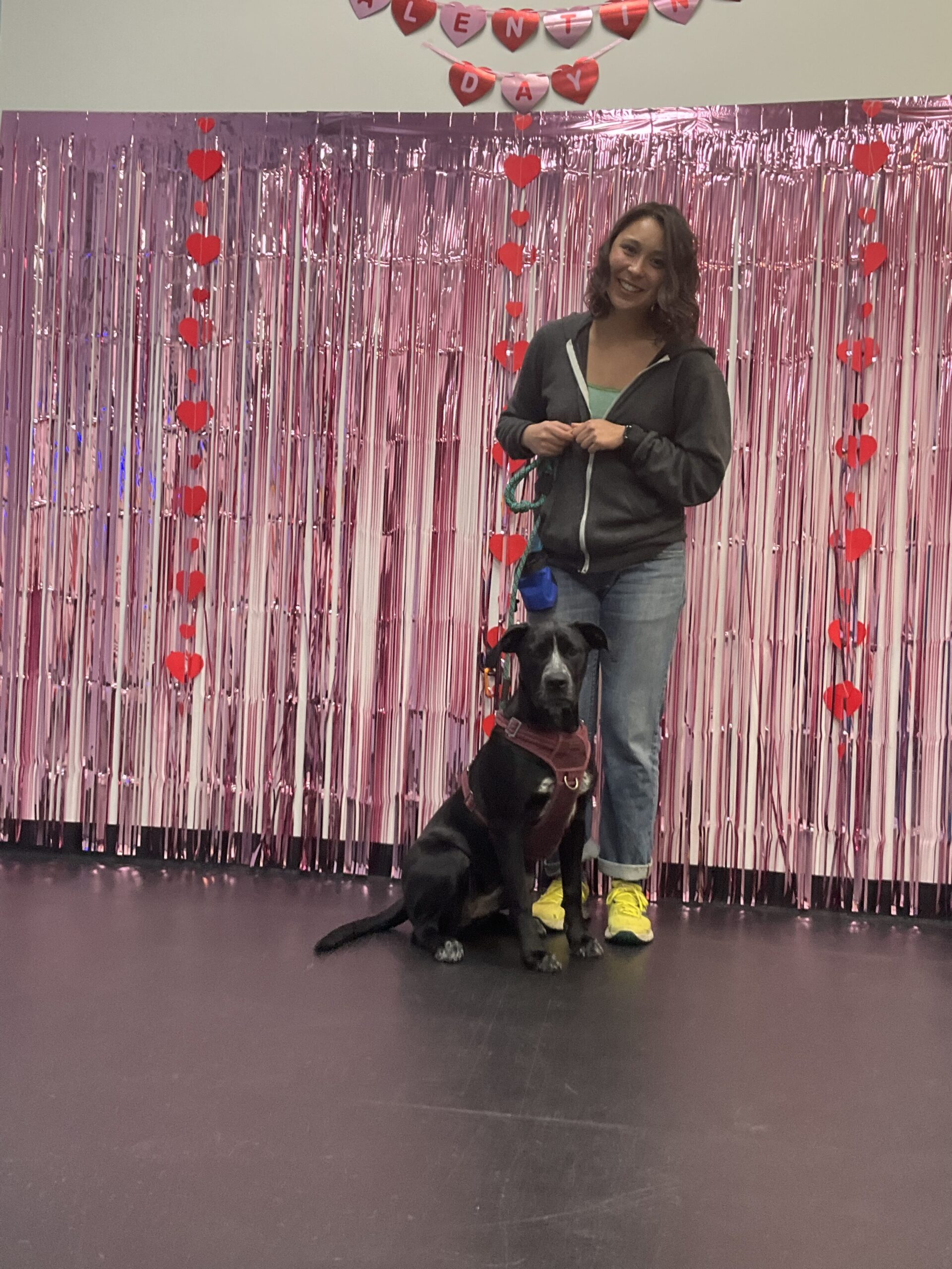 Valentine’s Day at Zoom Room Long Beach Check out this great photo of Sesame, one of the amazing dogs who train at the Zoom Room indoor dog training gym in Long Beach.