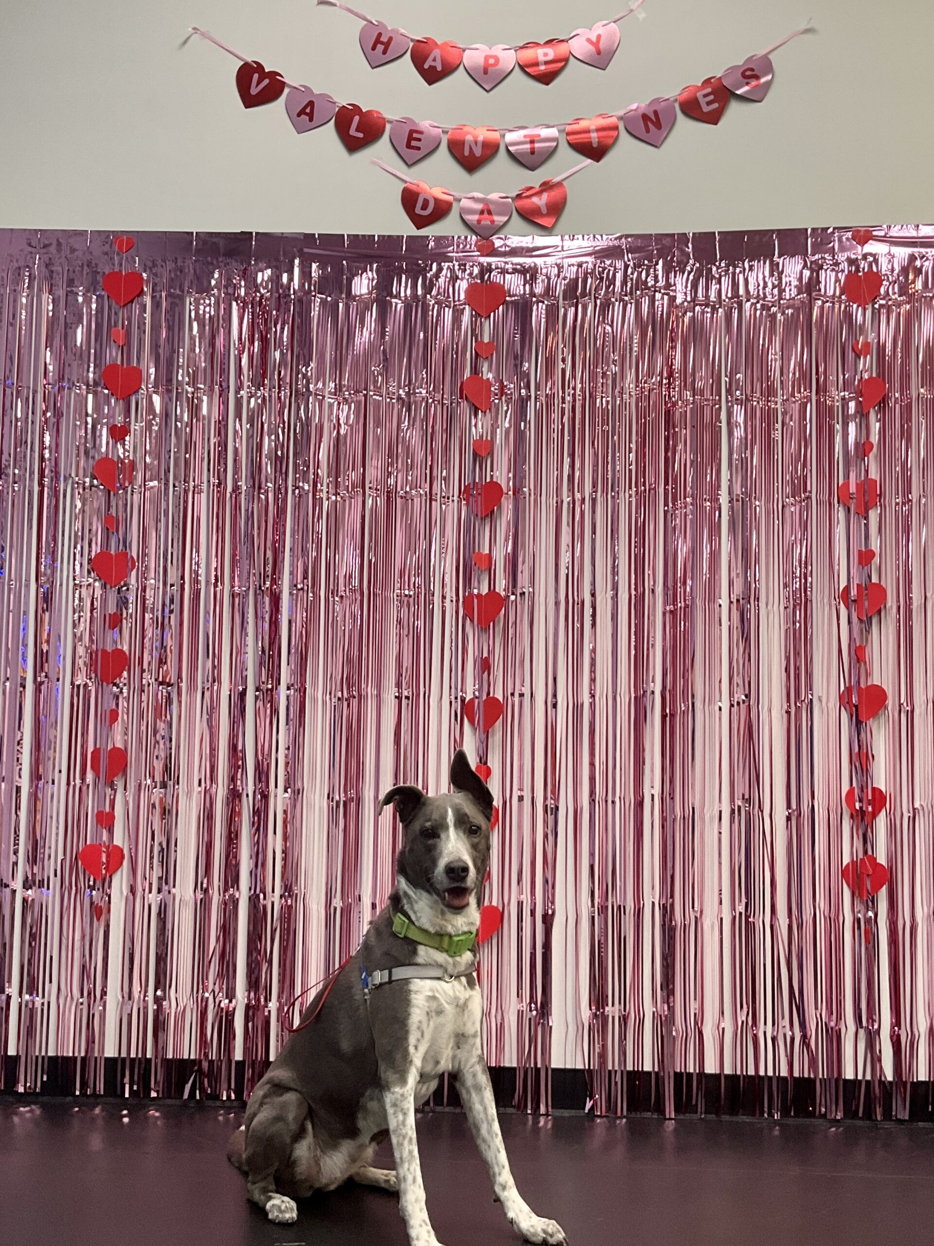 Valentines at ZoomRoom Long Beach Check out this great photo of Stevie, one of the amazing dogs who train at the Zoom Room indoor dog training gym in Long Beach.