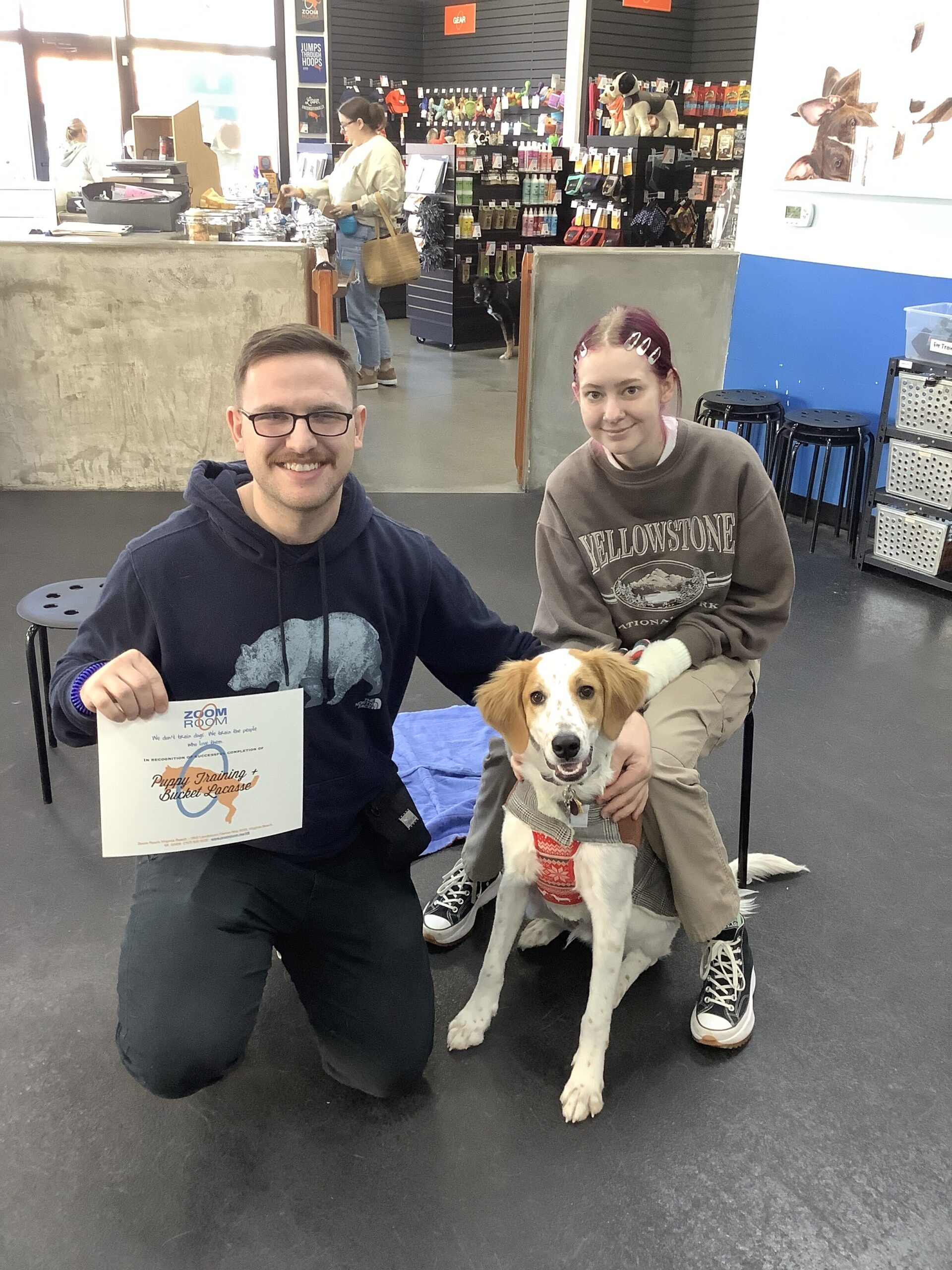 Pawtastic Job On Graduating Puppy Training + !! Check out this great photo of Bucket, one of the amazing dogs who train at the Zoom Room indoor dog training gym in Virginia Beach.