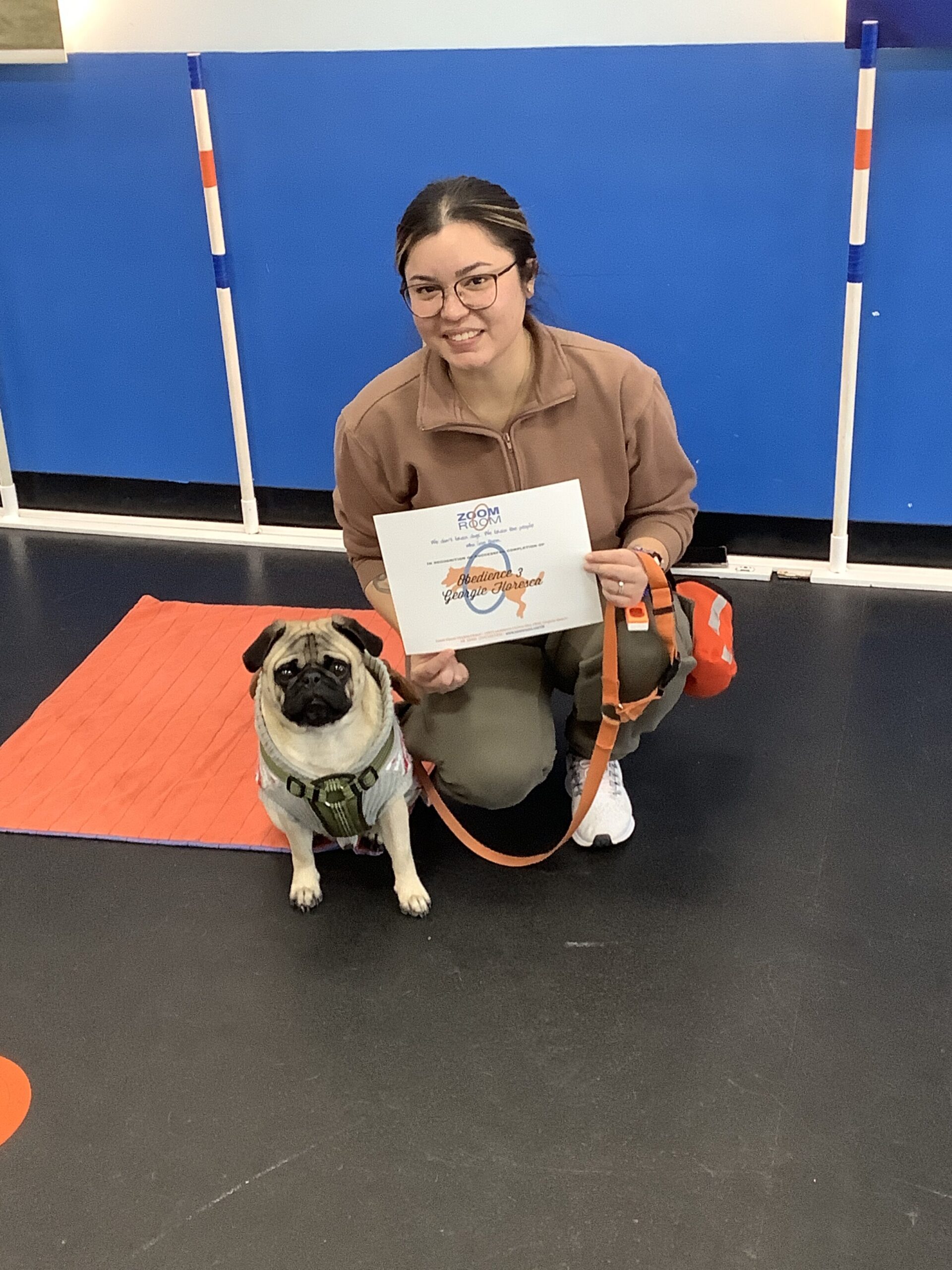 Congratulations Georgie on graduating Obedience 3! Check out this great photo of Georgie, one of the amazing dogs who train at the Zoom Room indoor dog training gym in Virginia Beach.