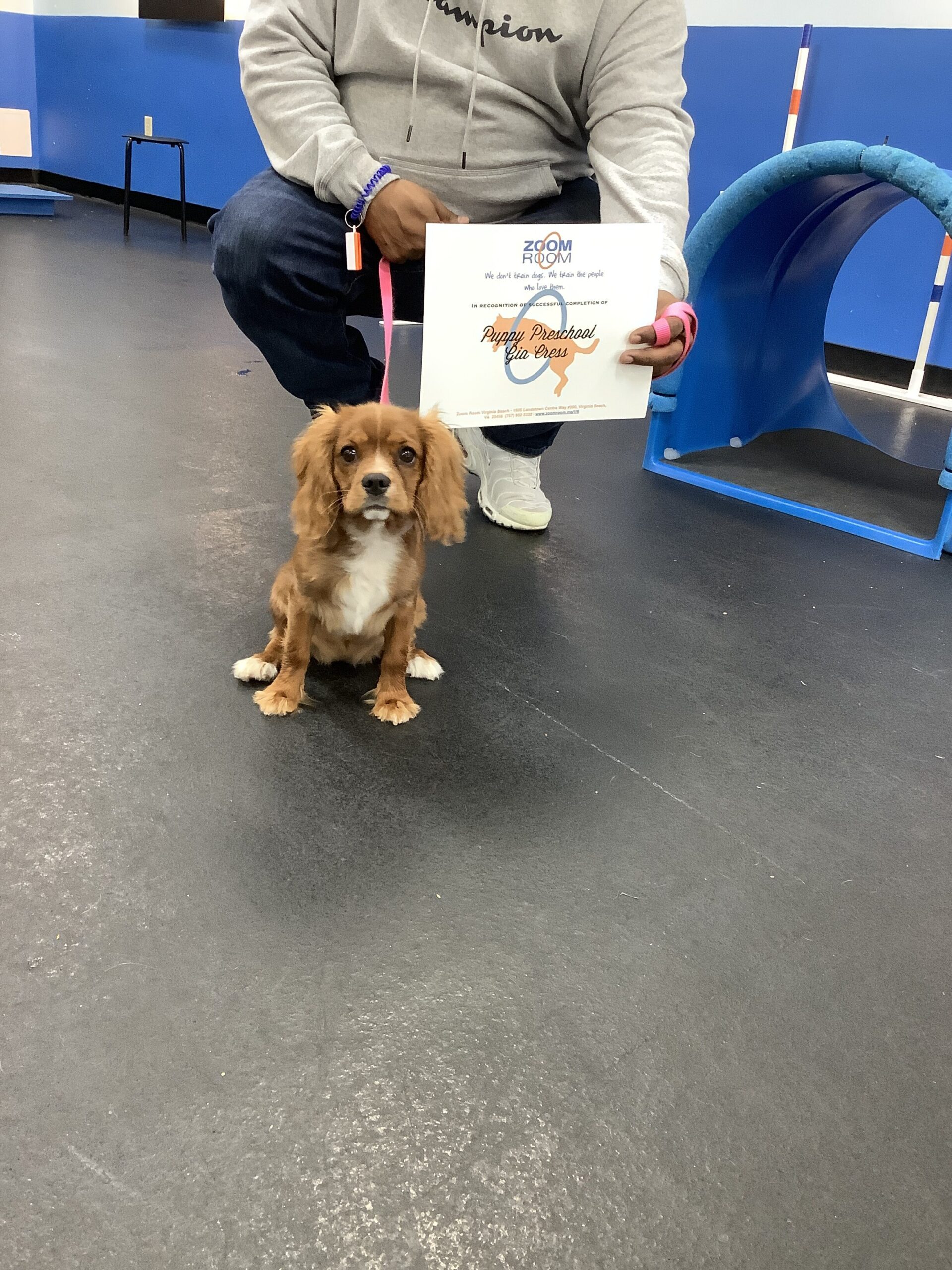 Congratulations!! Check out this great photo of Gia, one of the amazing dogs who train at the Zoom Room indoor dog training gym in Virginia Beach.
