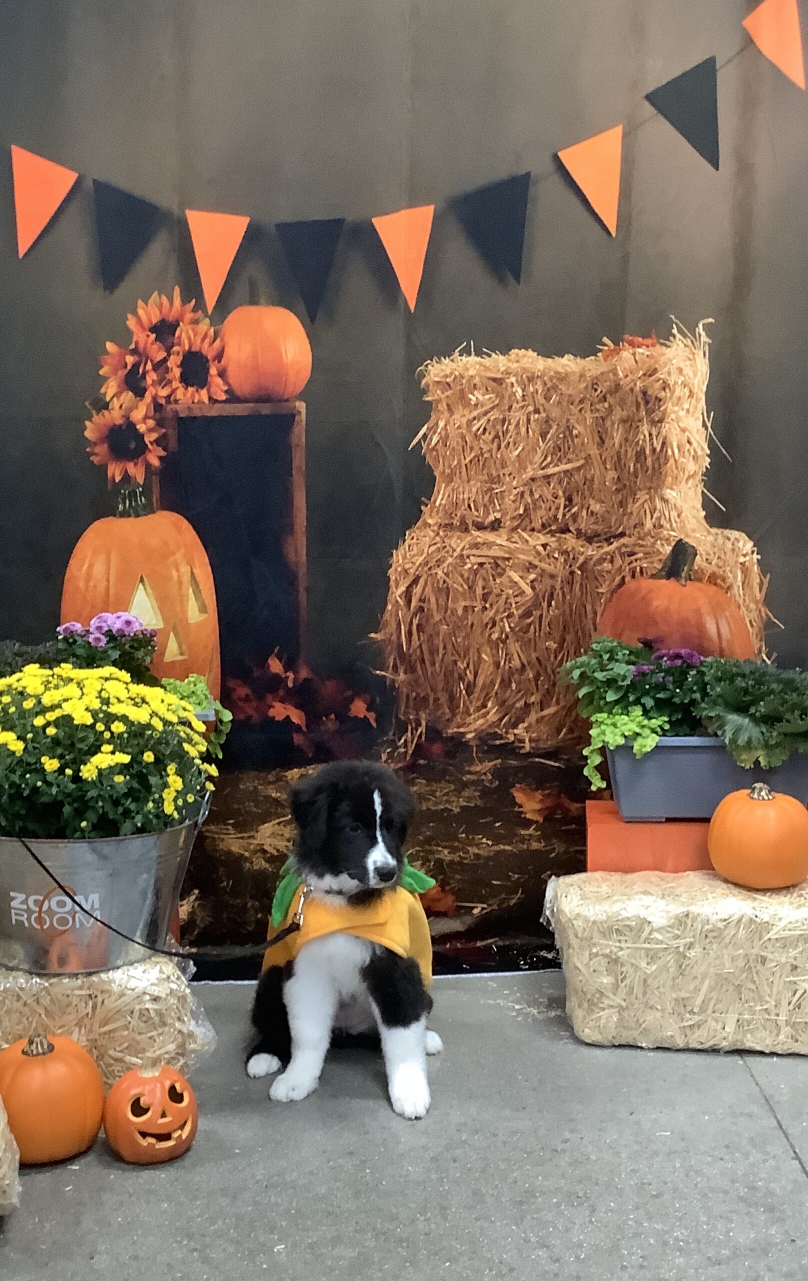 Thank you for coming to our Halloween party! Katniss was adorable! Check out this great photo of Katniss, one of the amazing dogs who train at the Zoom Room indoor dog training gym in Virginia Beach.