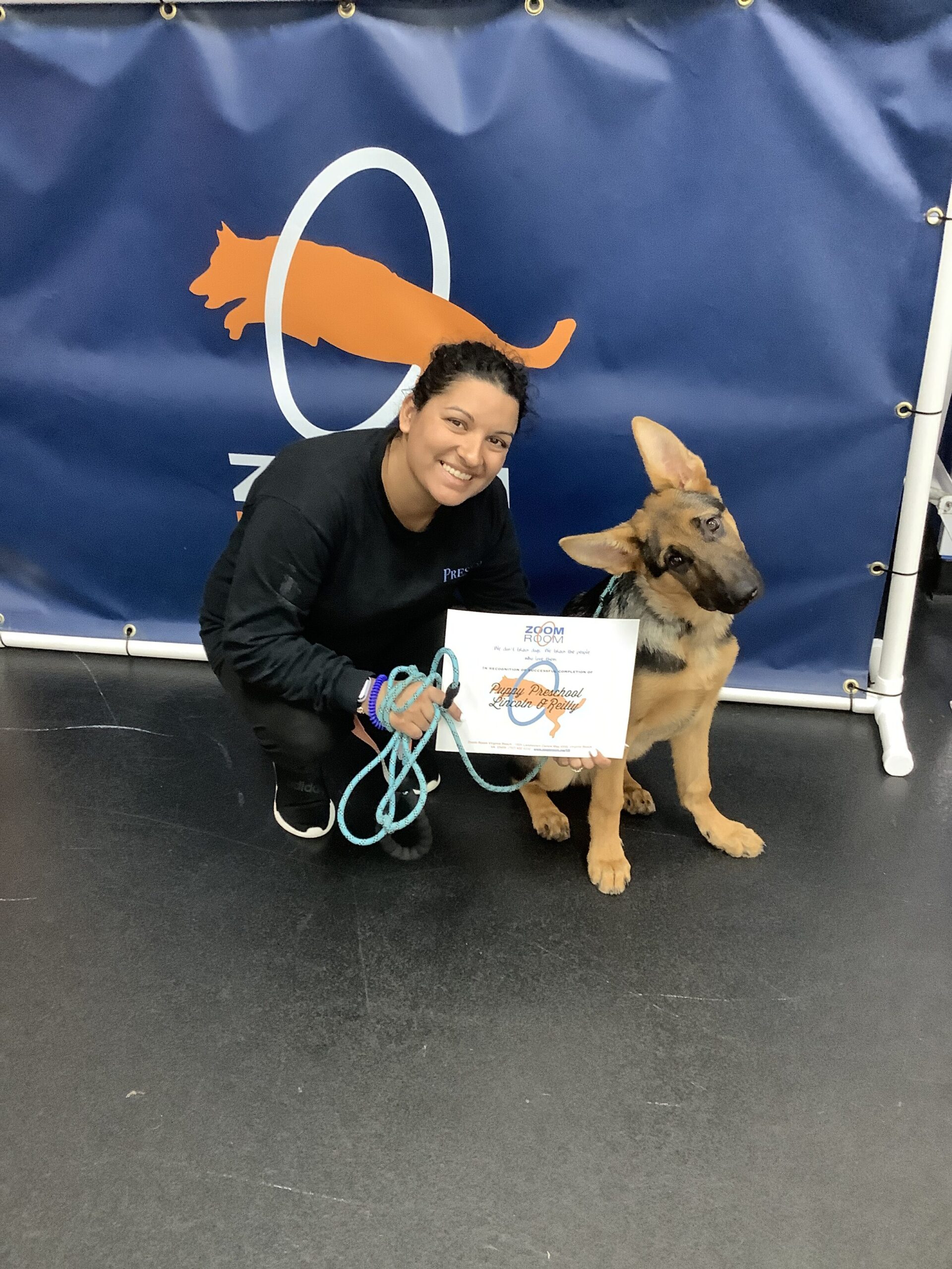 Congrats! Check out this great photo of Lincoln, one of the amazing dogs who train at the Zoom Room indoor dog training gym in Virginia Beach.