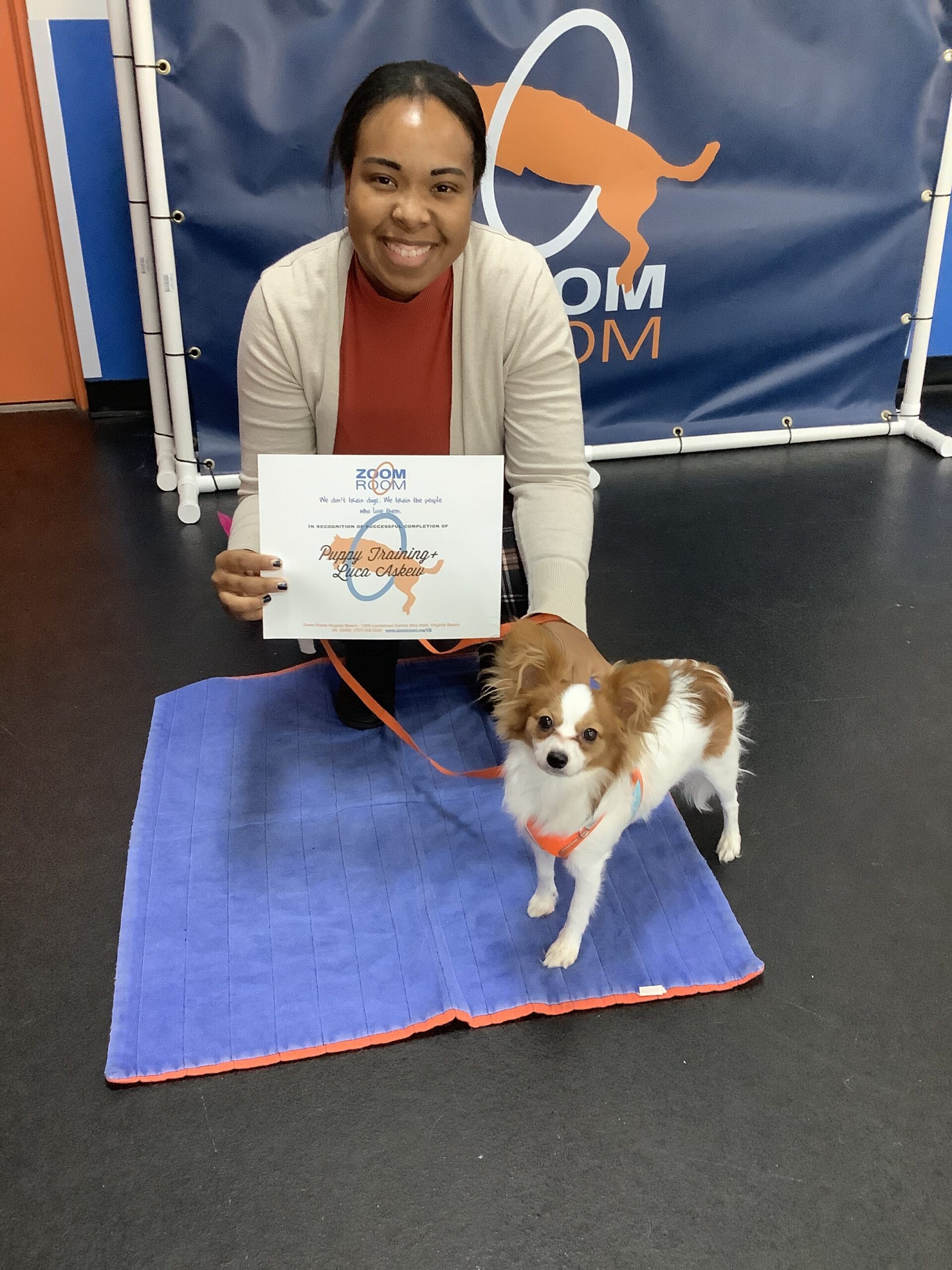 Congratulations Luca! Check out this great photo of Luca, one of the amazing dogs who train at the Zoom Room indoor dog training gym in Virginia Beach.