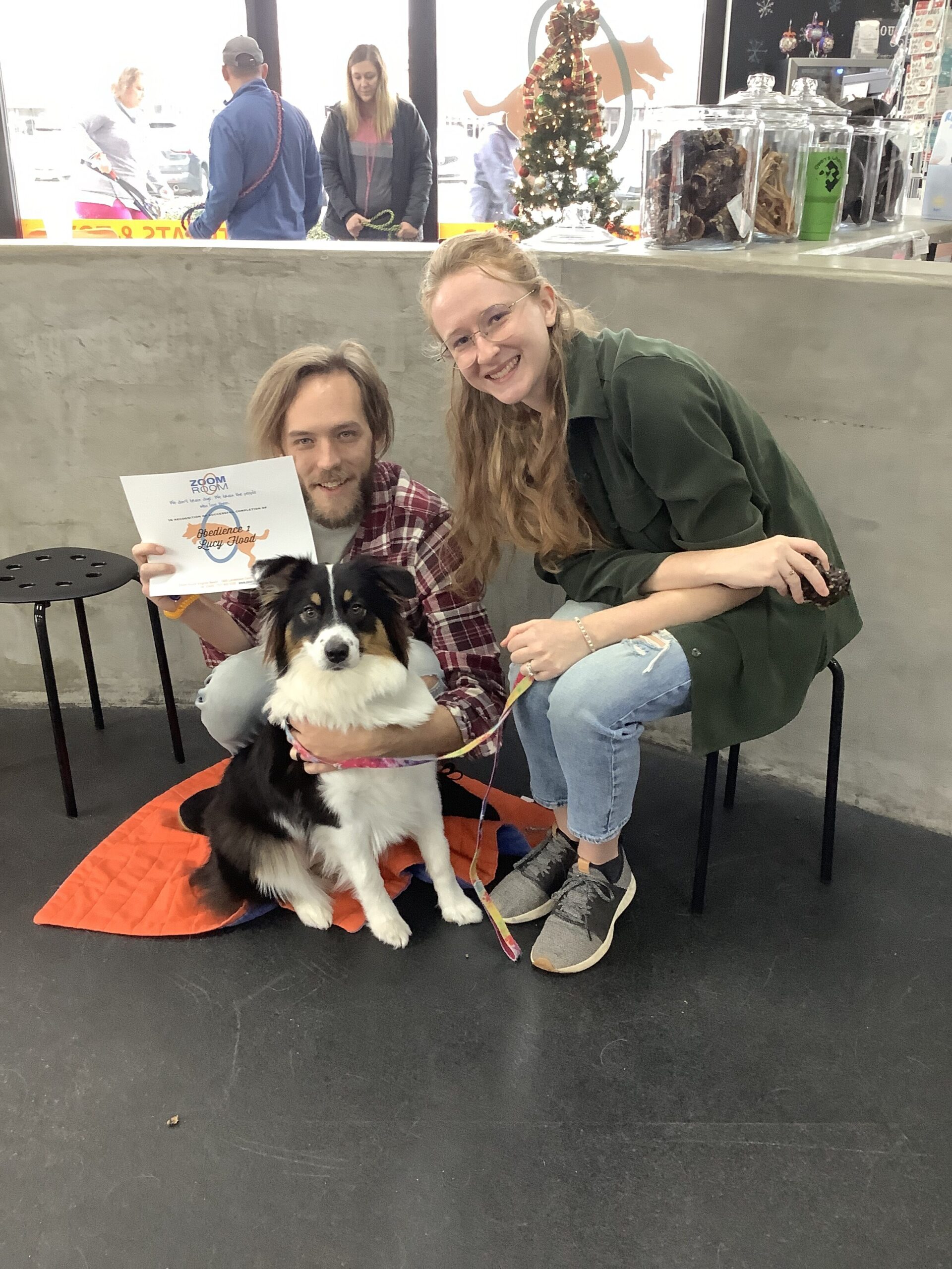 Congratulations Lucy! Check out this great photo of Lucy, one of the amazing dogs who train at the Zoom Room indoor dog training gym in Virginia Beach.
