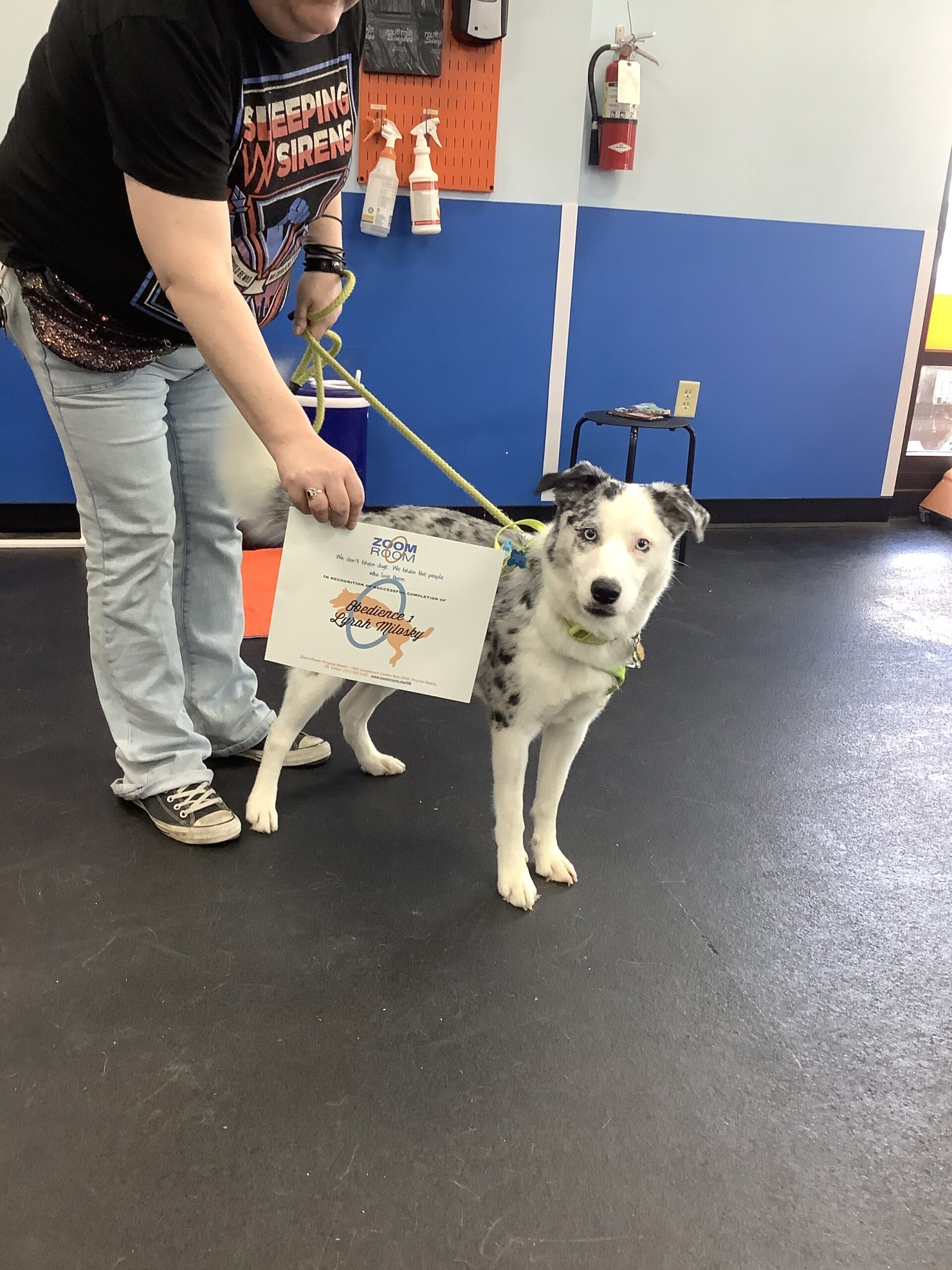 Great work Lyrah! Check out this great photo of Lyrah, one of the amazing dogs who train at the Zoom Room indoor dog training gym in Virginia Beach.