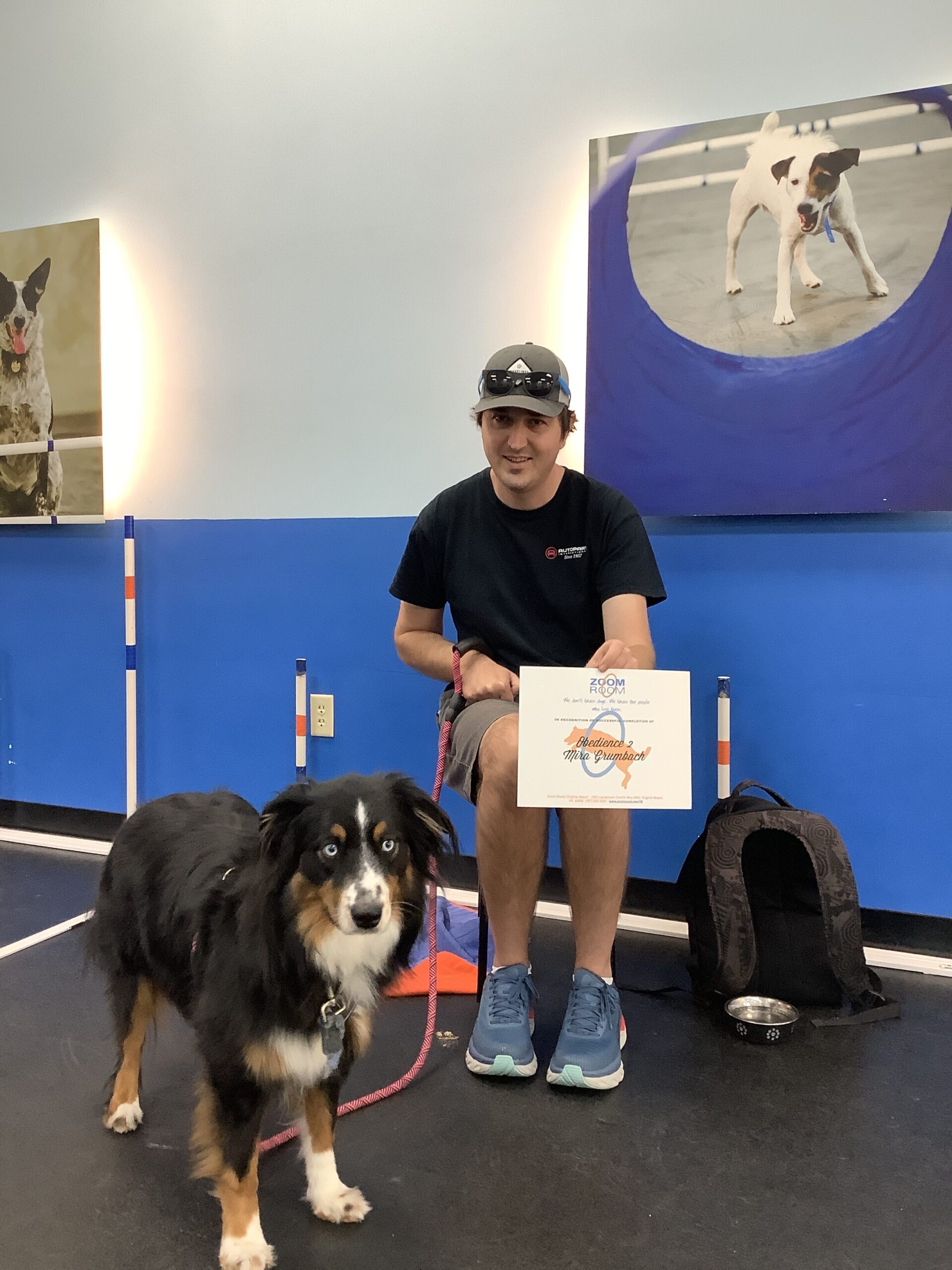 Pawtastic Job On Graduating Obedience 2 Check out this great photo of Mira, one of the amazing dogs who train at the Zoom Room indoor dog training gym in Virginia Beach.