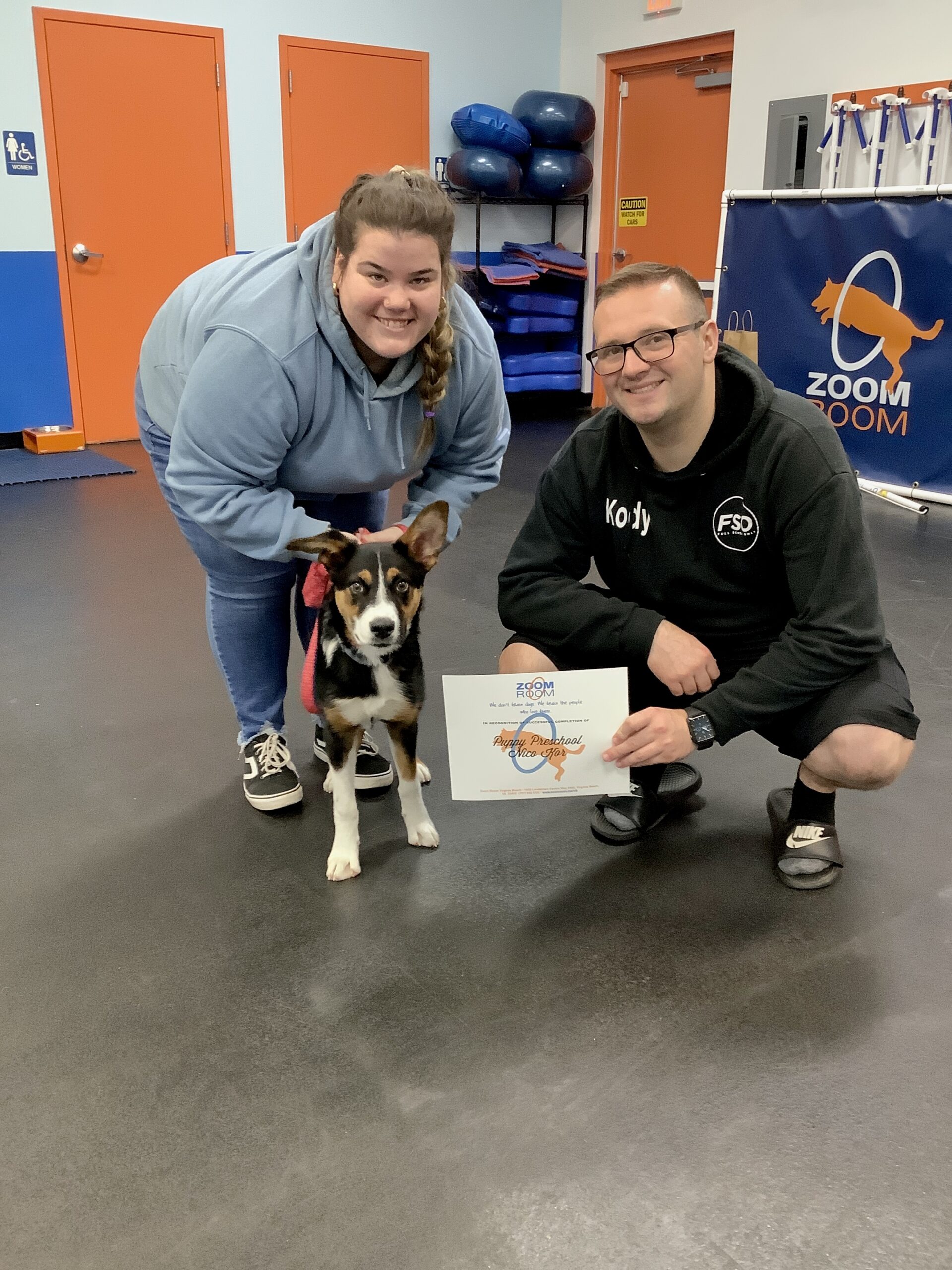 Congrats Nico for graduating Puppy Preschool! Check out this great photo of Nico, one of the amazing dogs who train at the Zoom Room indoor dog training gym in Virginia Beach.