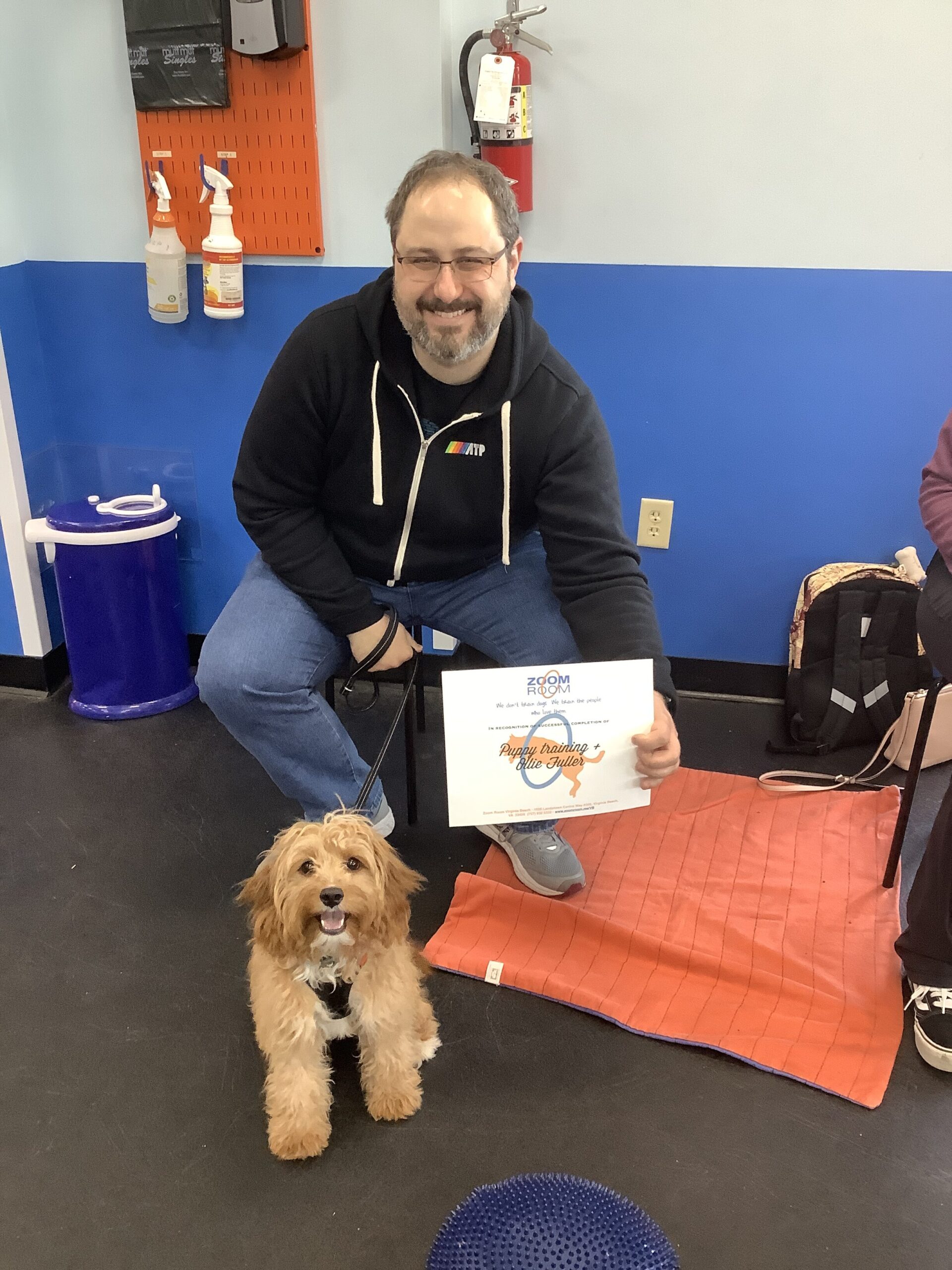 Congratulations Ollie Check out this great photo of Ollie, one of the amazing dogs who train at the Zoom Room indoor dog training gym in Virginia Beach.