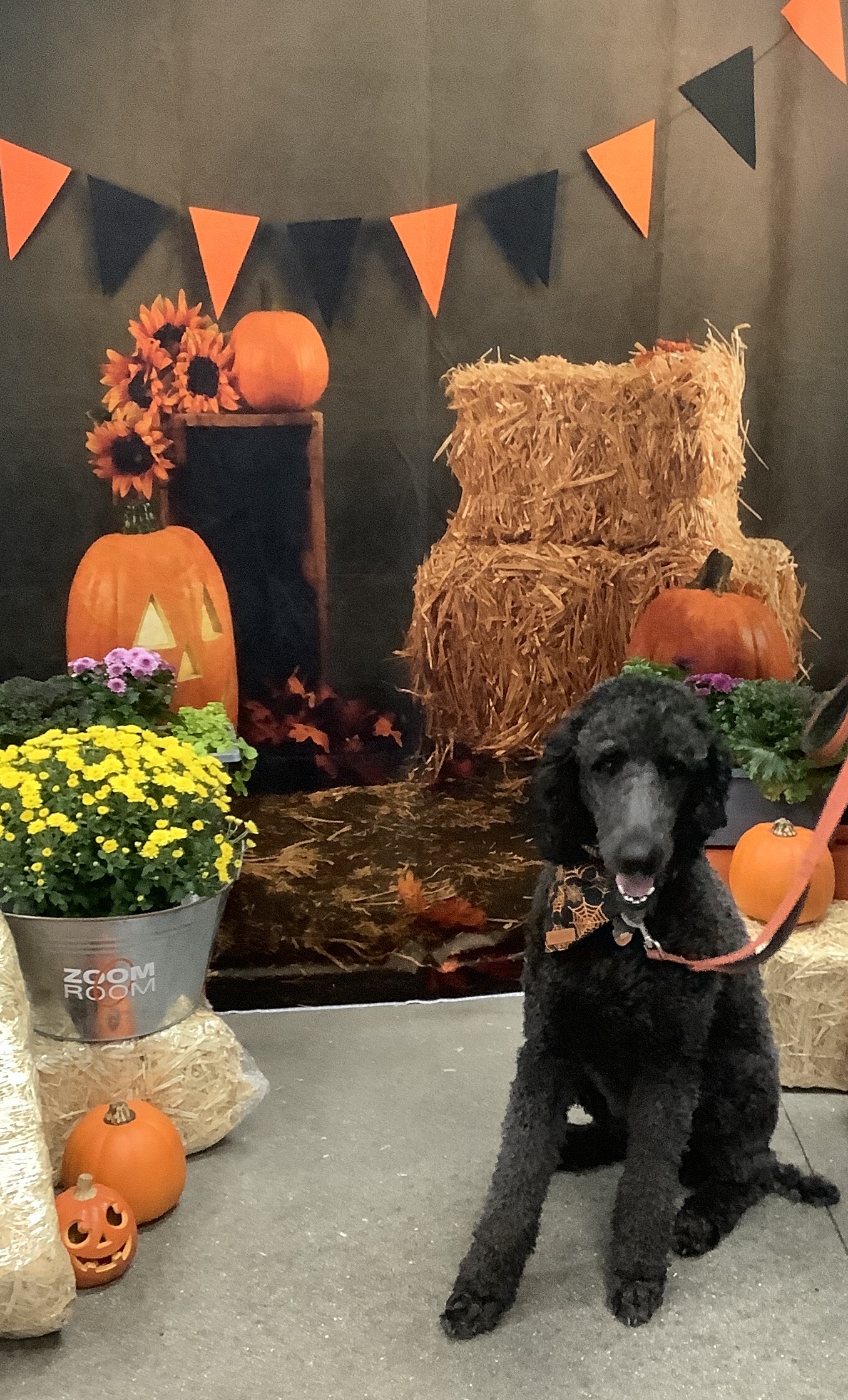 Thank you for coming to our Halloween party! Pippin looked great! Check out this great photo of Pippin, one of the amazing dogs who train at the Zoom Room indoor dog training gym in Virginia Beach.