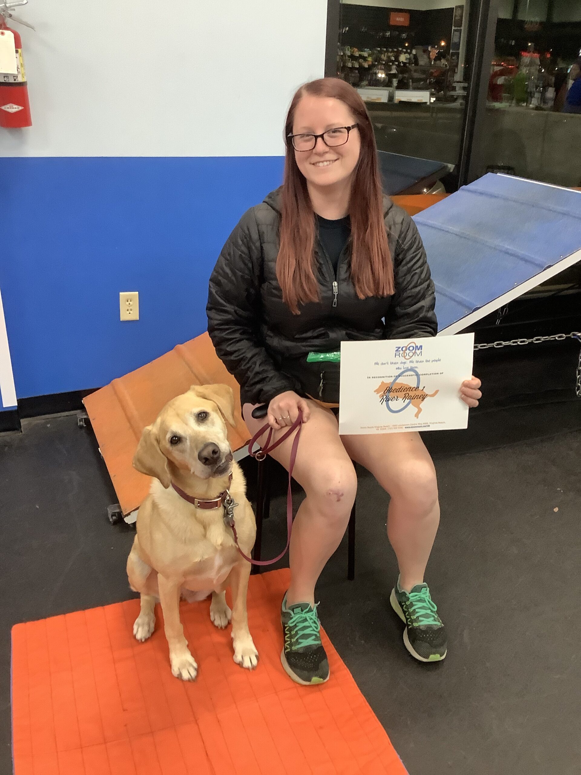 Congrats! Check out this great photo of River, one of the amazing dogs who train at the Zoom Room indoor dog training gym in Virginia Beach.
