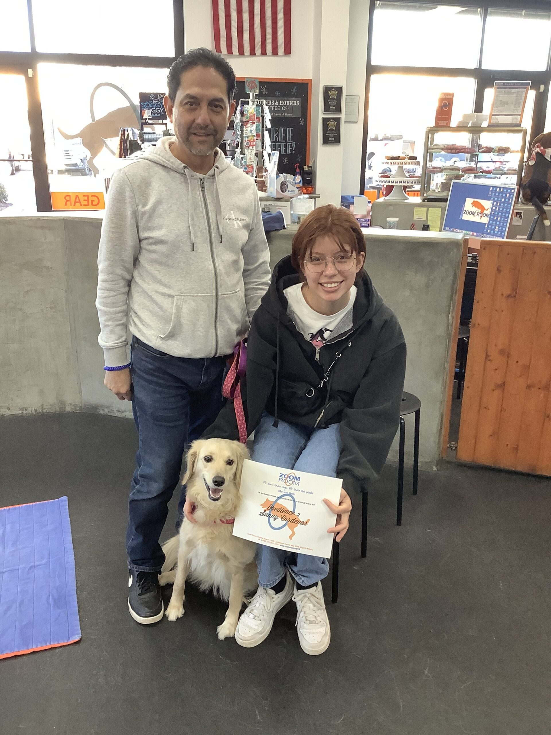 Congratulations Sunny! Check out this great photo of Sunny, one of the amazing dogs who train at the Zoom Room indoor dog training gym in Virginia Beach.